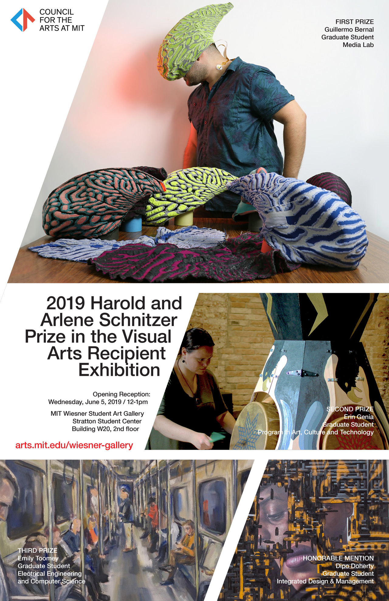 The 2019 recipients include: First Prize: Guillermo Bernal G, Media Lab (Fluid Interfaces Group) Second Prize: Erin Genia G, ACT Third Prize: Emily Toomey , G, Electrical Engineering and Computer Science Honorable Mention: Dipo Doherty, G, Integrated Design and Management
